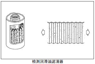 更換潤滑油濾清器時,取潤滑油(500ml) 作為樣品進行檢測,發(fā)現(xiàn)有金屬粉末或其他的異常時,切開濾芯進一步檢查金屬粉末的顏色和形狀并確認原因。