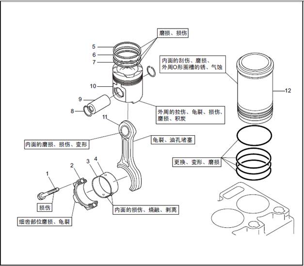 三菱S6R柴油發(fā)動機缸套、活塞、連桿的解體檢修