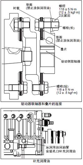 (b) 驅(qū)動器聯(lián)軸器和疊片的接合面如有雜質(zhì)嵌入會引起打滑或損傷,使用前螺栓、襯套和墊圈要清洗干凈。