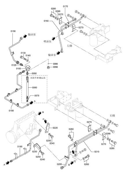 三菱12R發(fā)動機(jī)燃油濾清器管路