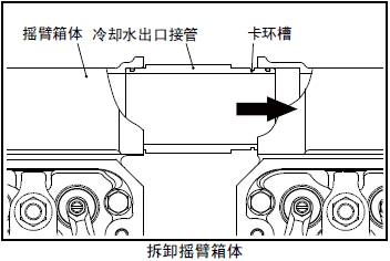 (2) 將冷卻水出口接管朝卡環(huán)槽側(cè)移動,使其和對接的三菱S12柴油發(fā)動機搖臂箱體分離。