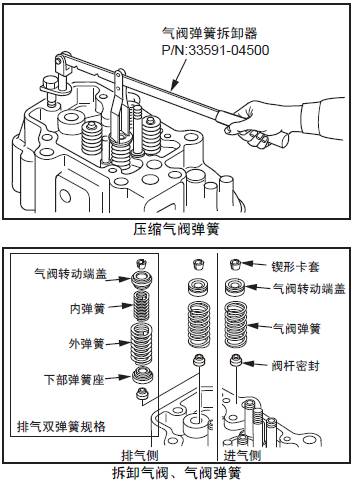 1.11 拆卸氣門、三菱S12柴油發(fā)動機氣門彈簧