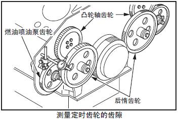 檢測(cè)要領(lǐng)參考「三菱S12柴油發(fā)動(dòng)機(jī)本體的組裝」的「檢測(cè)三菱S12柴油發(fā)動(dòng)機(jī)正時(shí)齒輪的齒隙」項(xiàng)。