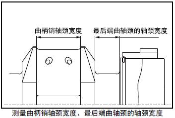 (2) 測量曲柄銷和最后端三菱S12柴油發(fā)動機曲軸頸的軸頸寬度。根據(jù)最后端三菱S12柴油發(fā)動機曲軸頸的軸頸寬度的磨損程度使用加大尺寸三菱S12柴油發(fā)動機推力片時,按照加大尺寸三菱S12柴油發(fā)動機推力片的規(guī)格研磨三菱S12柴油發(fā)動機曲軸。