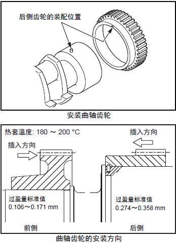 注: 通過加熱三菱S12柴油發(fā)動機曲軸齒輪拆出時,加熱溫度應(yīng)在180ºC以下。