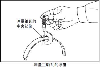 超過極限值時,將主軸瓦上下整套更換。根據(jù)三菱S12柴油發(fā)動機曲軸頸的磨損程度,在三菱S12柴油發(fā)動機曲軸重新研磨使用時,使用加厚尺寸的主軸瓦。