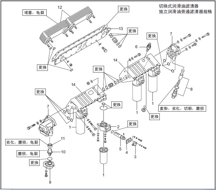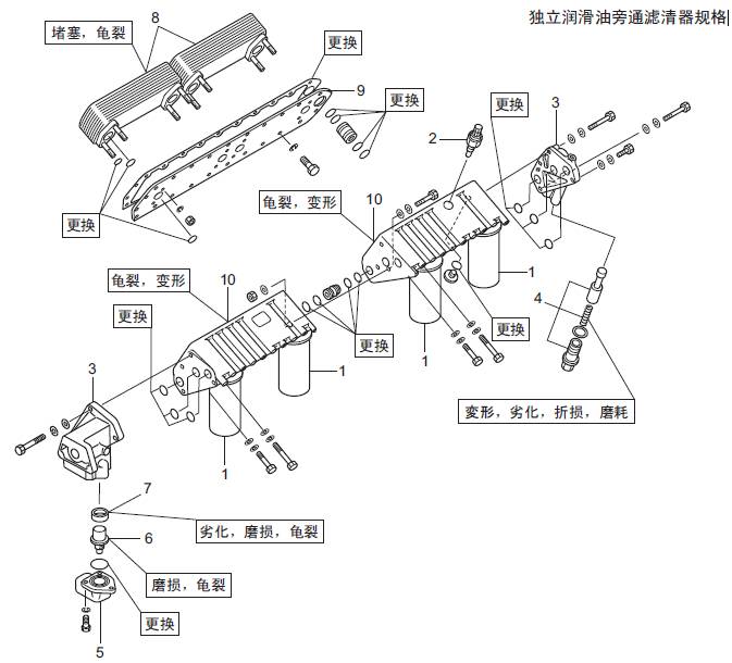 2.4 潤滑油濾清器、潤滑油濾清器報警器、釋放閥、左側(cè)潤滑油冷卻器的解體、檢修