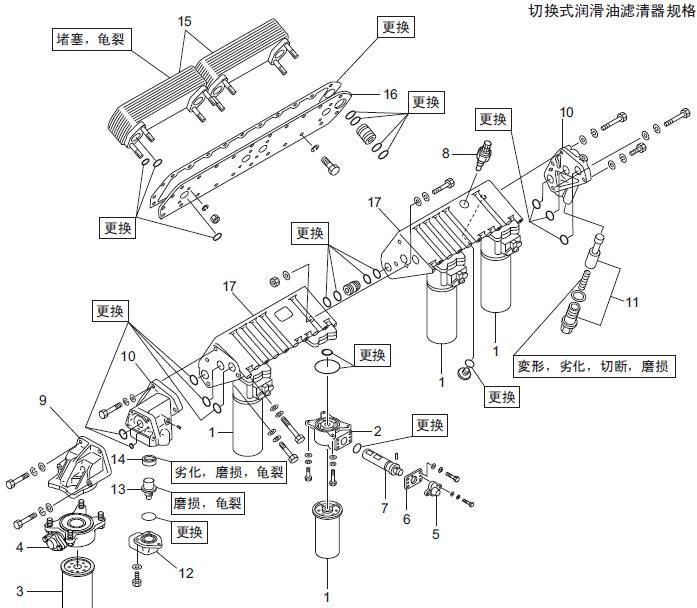 潤滑油濾清器、潤滑油濾清器報警器、釋放閥、左側(cè)潤滑油冷卻器的解體、檢修