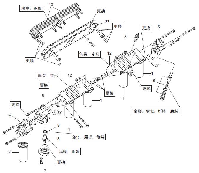 (2) 濾清器報警器的亮燈開始壓力超出標(biāo)準(zhǔn)值時,更換新品。
