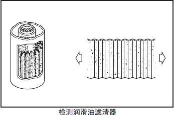 更換潤滑油濾清器時,取潤滑油(500ml) 作為樣品進(jìn)行檢測,發(fā)現(xiàn)有金屬粉末或其他的異常時,切開濾芯進(jìn)一步檢查金屬粉末的顏色和形狀并確認(rèn)原因。