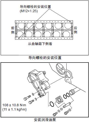 (3) 在三菱S12柴油發(fā)動機(jī)缸體安裝2 個導(dǎo)向螺栓,安裝油底殼。