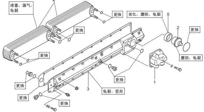 (1) 檢查潤滑油恒溫器的密封,發(fā)現(xiàn)老化或龜裂時更換新品。