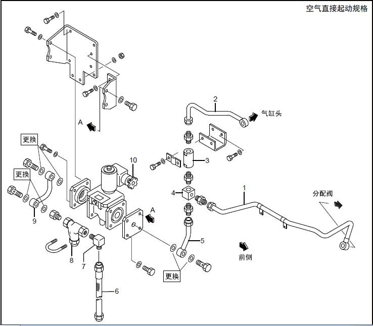 1. 拆卸三菱S12柴油發(fā)動機空氣起動系統(tǒng)