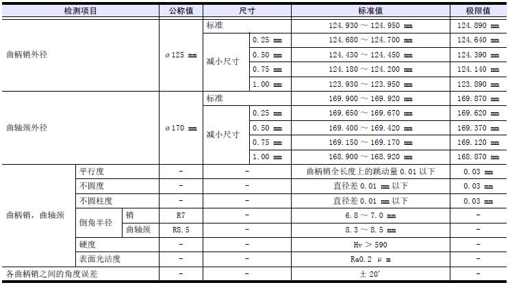 使用加厚尺寸的軸瓦,按照和加厚尺寸軸瓦對應(yīng)的標(biāo)準(zhǔn)值研磨三菱R16柴油發(fā)動機曲軸。