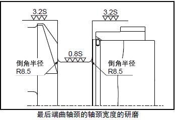 注意研磨時不要改變軸頸端部倒角的半徑。對于表面硬度明顯降低的三菱R16柴油發(fā)動機曲軸,要再進(jìn)行熱處理并進(jìn)行磁性探傷檢查。研磨加工后的表面精度均應(yīng)滿足標(biāo)準(zhǔn)值要求。