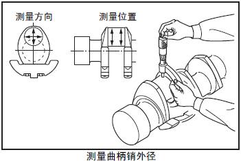 (1) 測量三菱R16柴油發(fā)動機曲軸的曲柄銷和三菱R16柴油發(fā)動機曲軸頸的外徑。