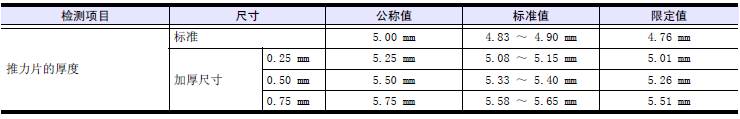 注: 使用的前后2片三菱R16柴油發(fā)動機推力片的厚度差不超過0.25 mm。