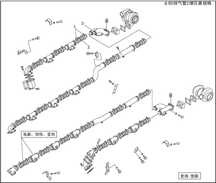 1 聯(lián)軸器2 饒性管 3 排氣歧管