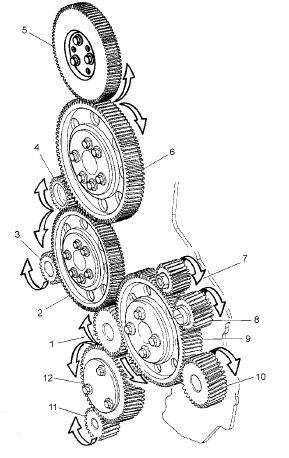 進(jìn)行檢查時(shí),正時(shí)齒輪必須按照正確的方向轉(zhuǎn)動(dòng)(從前部看為順時(shí)針方向),以便消除所有的齒隙。