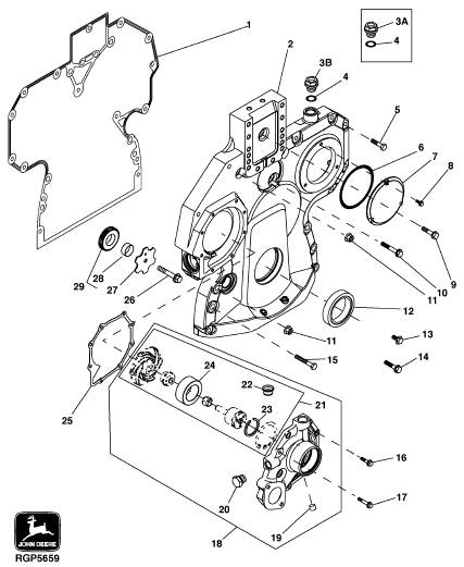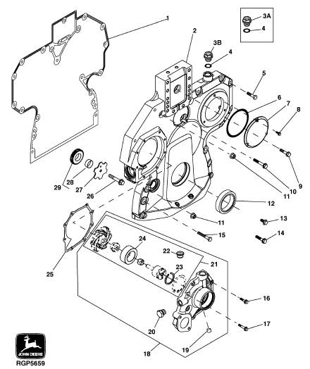 John Deere約翰迪爾強(qiáng)鹿柴油發(fā)動機(jī)正時(shí)齒輪蓋、水泵、曲軸下惰輪零件圖冊