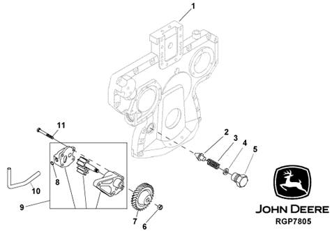 John Deere約翰迪爾強(qiáng)鹿6068 6.8L柴油發(fā)動機(jī)機(jī)油泵和機(jī)油壓力調(diào)節(jié)閥零件圖冊