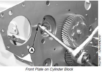NOTE: A camshaft bushing is installed in front (No. 1)camshaft bore only. The front plate has achamfered edge allowing camshaft bushingremoval and installation with the front plateinstalled.
