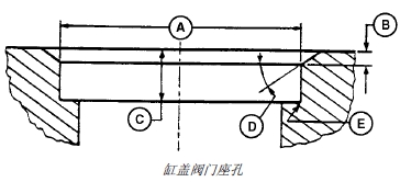 檢查閥門座內(nèi)孔尺寸是否符合機器缸蓋下列技術(shù)規(guī)格的要求: