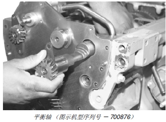 重要提示: 平衡軸必須安裝在原來(lái)拆下的位置。顛倒平衡軸位置會(huì)造成平衡軸襯套和平衡軸過(guò)度磨損。如果懷疑軸的位置安裝不當(dāng),應(yīng)重新安裝平衡軸和襯套。
