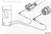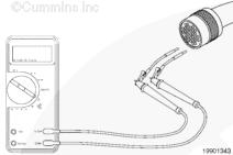 測量從康明斯ISB5.9 G CM2180 發(fā)動機線束中的變壓器回路觸針至缸體接地之間的電阻。