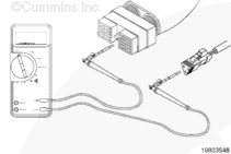 從 ECM 上斷開康明斯ISB5.9 G CM2180 發(fā)動機線束康明斯電子控制模塊(ECM) 1 號接頭。從康明斯ISB5.9 G CM2180 發(fā)動機線束上斷開變壓器。設(shè)置萬用表以便測量電阻。