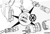 從遠程油門開關(guān)信號導(dǎo)線拆下測試導(dǎo)線,然后檢查所有其它觸針。萬用表必須顯示開路(100K 歐姆或更大)。
