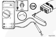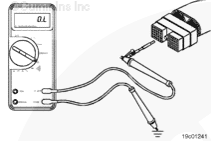 將開關(guān)置于斷開位置并測量電阻。萬用表必須顯示閉路(10 歐姆或更?。?。如果電路沒有閉合,則開關(guān)故障。關(guān)于更換步驟,參考 OEM 故障判斷和排除手冊。如果電阻值正確,必須檢查開關(guān)是否仍舊存在對地短路。