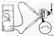 找到最大康明斯ISB5.9 G CM2180 發(fā)動機轉(zhuǎn)速開關(guān)。給這些導(dǎo)線貼上帶有開關(guān)位置或?qū)Ь€號碼的標(biāo)簽。從開關(guān)上拆下電氣接頭。調(diào)整萬用表以便測量電阻。將萬用表一個表筆接觸開關(guān)一個端子。將另一根萬用表表筆接觸開關(guān)的另一端子。