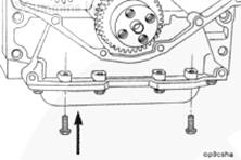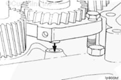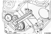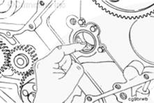 注: 如果安裝新的機油泵,確保齒輪的側隙正確。