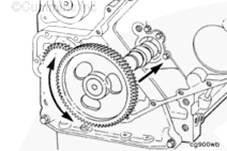 在凸輪軸齒輪與曲軸齒輪嚙合之前,檢查凸輪軸是否容易旋轉。如果安裝正確,凸輪軸應可以旋轉自如。