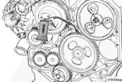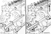 安裝止推墊圈,按圖示對正正時標記,完成凸輪軸的安裝。