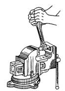 連桿扭曲的校正可將連桿夾在虎鉗上,用扭曲校正器、長(zhǎng)柄扳鉗或管子鉗進(jìn)行校正,用扭曲校正器校正連桿扭曲的方法如圖所示。