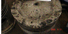 (1)現(xiàn)象:活塞頂部金屬產生層層剝落使頂部厚度逐漸減薄,出現(xiàn)釩腐蝕的麻點或凹坑,大小、深淺不一地分布于活塞頂部,這種現(xiàn)象稱為活塞頂部燒蝕。嚴重時可使頂部燒穿。