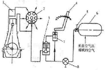 7) 主要部件有:空氣壓縮瓶6、主啟動(dòng)閥3、空氣分配器2、氣缸啟動(dòng)閥1和啟動(dòng)控制閥7。