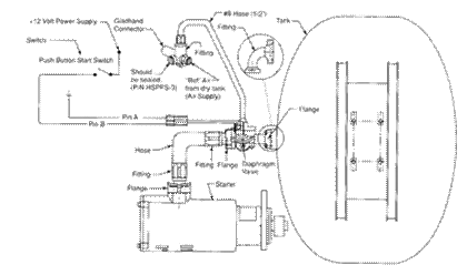 1) 使用壓縮空氣驅(qū)動(dòng)空氣馬達(dá),從而帶動(dòng)啟動(dòng)馬達(dá)齒輪和發(fā)動(dòng)機(jī)飛輪轉(zhuǎn)動(dòng)