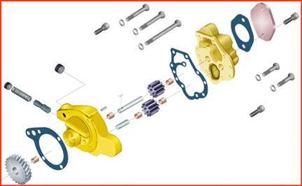 1. 機(jī)油泵:在康明斯發(fā)動機(jī)上均采用齒輪泵,為潤滑系統(tǒng)提供壓力