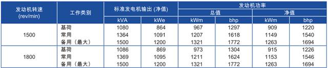 功率:于1500rev/min時,1263kWm