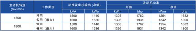 功率:于1500rev/min時,1166 kWm