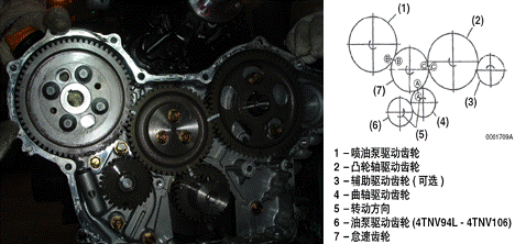 如需更換新油泵,在新的噴油泵的齒輪箱/前蓋后裝上正時標(biāo)簽。將標(biāo)準(zhǔn)記號拆卸時在齒輪箱上做的參考記號對齊
