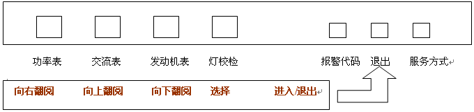當發(fā)電機組控制器+(GSC+),置于服務方式時,其正面的小鍵盤開關上有替換的功能,這些功能圖示如下: