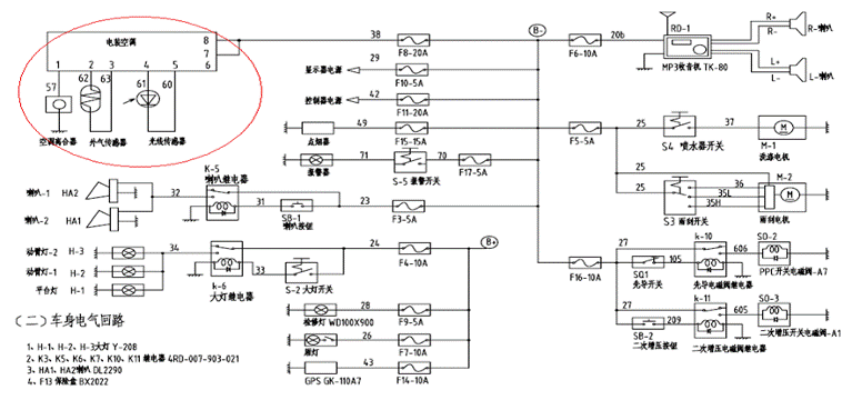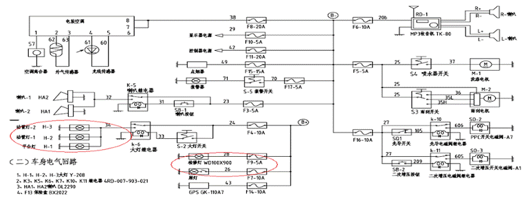 排除辦法:①更換KB1,②插接好相應(yīng)端子,③更換D2,④將線接好,⑤更換電源繼電器,⑥更換啟動開關(guān),
