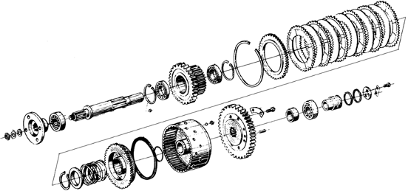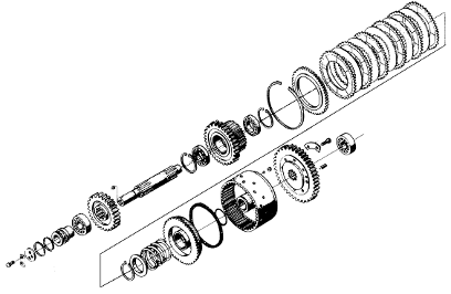 前進(jìn)三擋:嚙合前進(jìn)擋,三擋兩離合器: