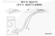 條件 停機/運轉(zhuǎn)開關(guān)處在“STOP”(停機)位置。 控制器不在診斷模式。 采取措施 將機油壓力傳感器抽頭電纜(零件號 3824775)安裝到傳感器與傳感器線束接頭之間。 將抽頭電纜電源(觸針 A)和回路(觸針 B)接頭安裝在萬用表上,測量電源電壓。 |