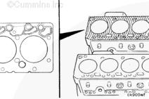 康明斯ISF3.8 CM2220 AN 和 IAN 發(fā)動(dòng)機(jī)缸蓋密封墊采用專(zhuān)門(mén)的金屬設(shè)計(jì),水孔周?chē)膬蓚?cè)都有印制的 O 形圈。密封墊上的壓紋密封住了缸孔。密封墊還提供節(jié)流作用,控制缸體流至缸蓋的冷卻液流。本手冊(cè)涉及的發(fā)動(dòng)機(jī)不需要進(jìn)行缸蓋密封墊分級(jí)。對(duì)于缸蓋或缸體燃燒表面的重修,可以使用厚度增大的缸蓋密封墊。
