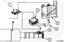 SCR 催化器出口處的氮氧化物傳感器 (4) 將監(jiān)測(cè)排氣系統(tǒng)的氮氧化物排放量,并將信息送回 ECM。